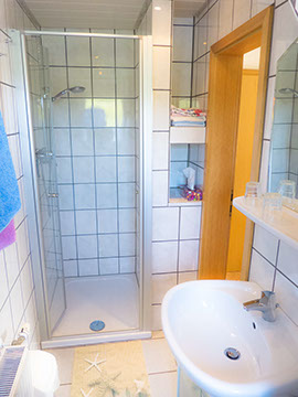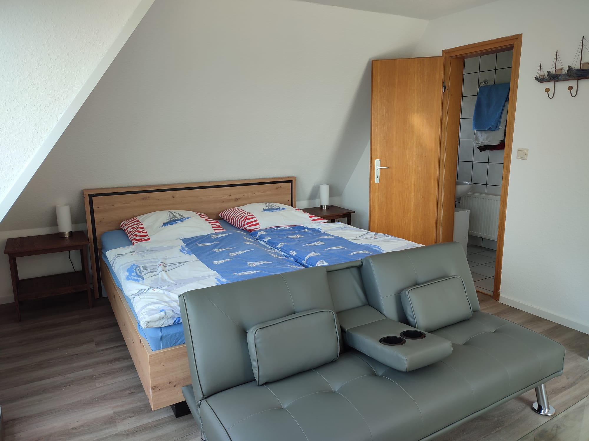 einem Wohnzimmer mit Fernseher und gemütlicher Sitzecke ausgestattet. Die Couch kann auf Wunsch auch zu einem Schlafsofa umgerüstet werden. Wie in der ganzen Pension ist auch auf dem Zimmer ein kostenloser WLAN Zugang möglich. Des weiteren steht ein kostenloser KFZ Stellplatz zur Verfügung und Hunde sind gern gesehen als Gäste.