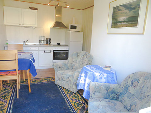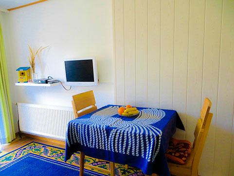 Des weiteren besitzt die Wohnung eine gemütliche Ess- u. Sitzecke und ein Fernseher. Kostenloser WLAN Zugang ist möglich und ein kostenfreier